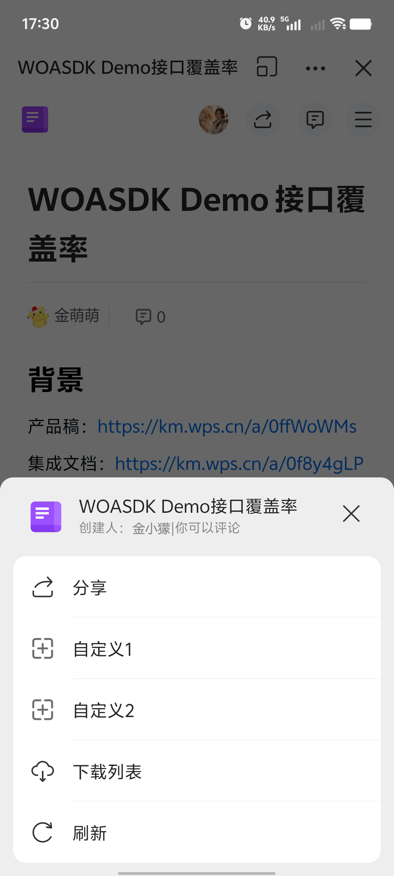 协作中台 SDK 支持自定义文档详情页,具体包括以下类型选项: