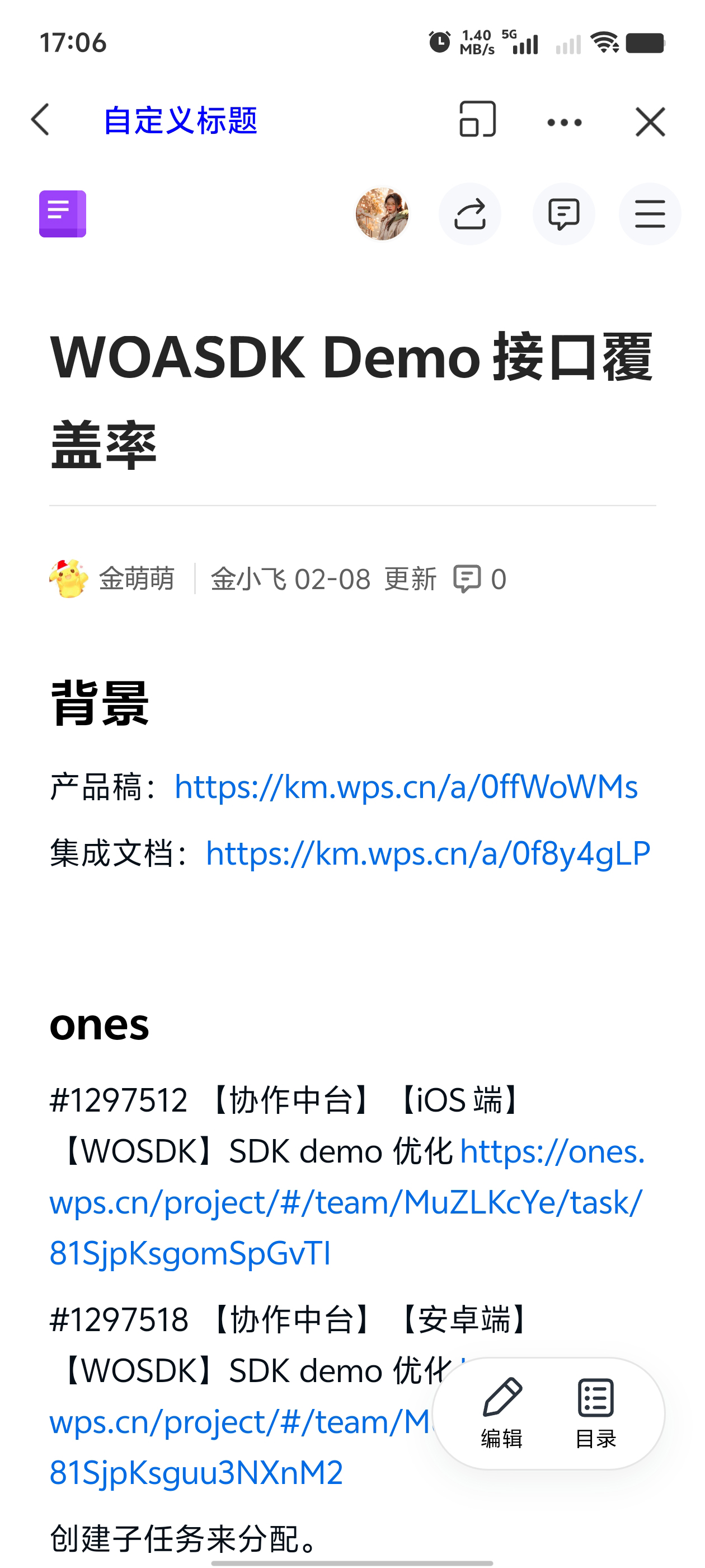 协作中台 SDK 支持文档详情页界面的自定义,可通过 KIMExpDocumentHomeWebView 提供的扩展接口,实现如下标题栏的自定义设置:
