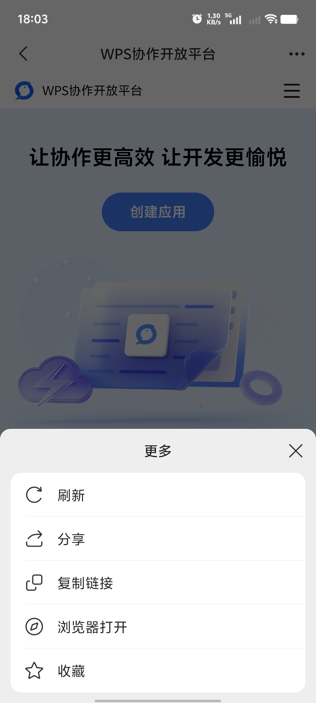 网页容器底部弹出菜单默认包含了“刷新”、“分享”、“复制链接”、“浏览器打开”,“收藏”。可通过实现KIMExpBrowserPage 协议方法来添加/删除/修改菜单项或拦截点击事件