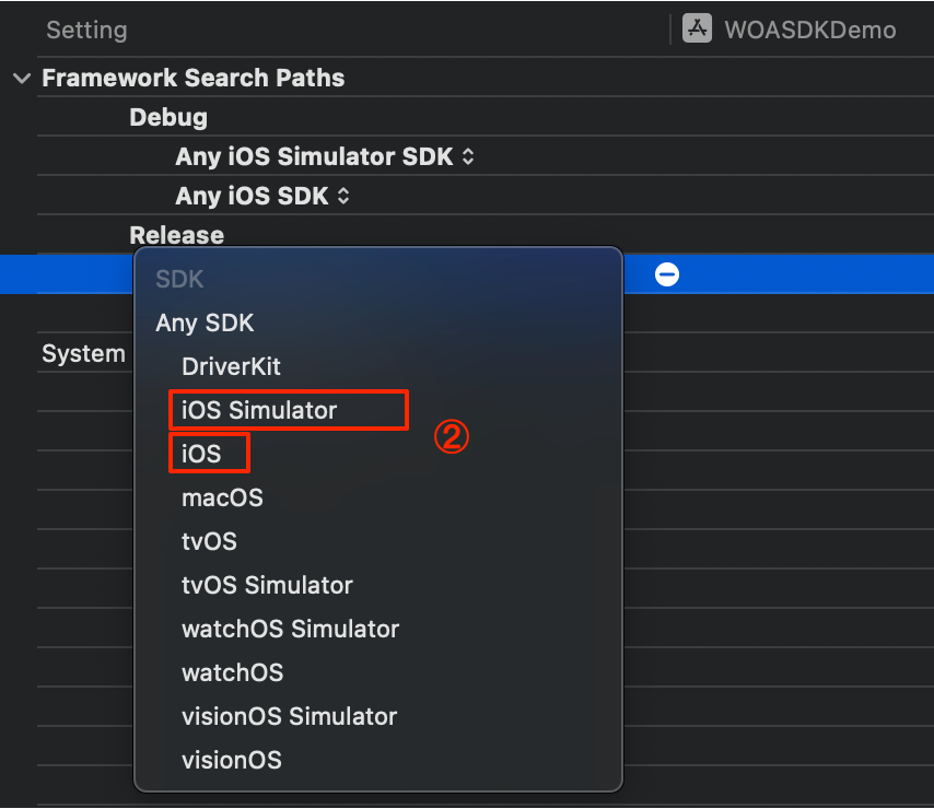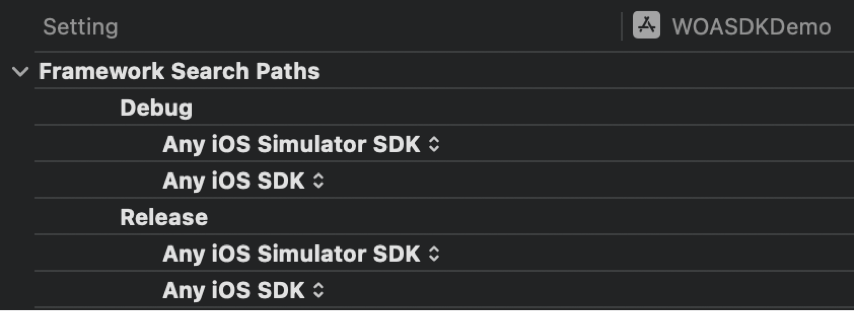 Debug与Release的Any iOS SDK添加相同的真机搜索路径