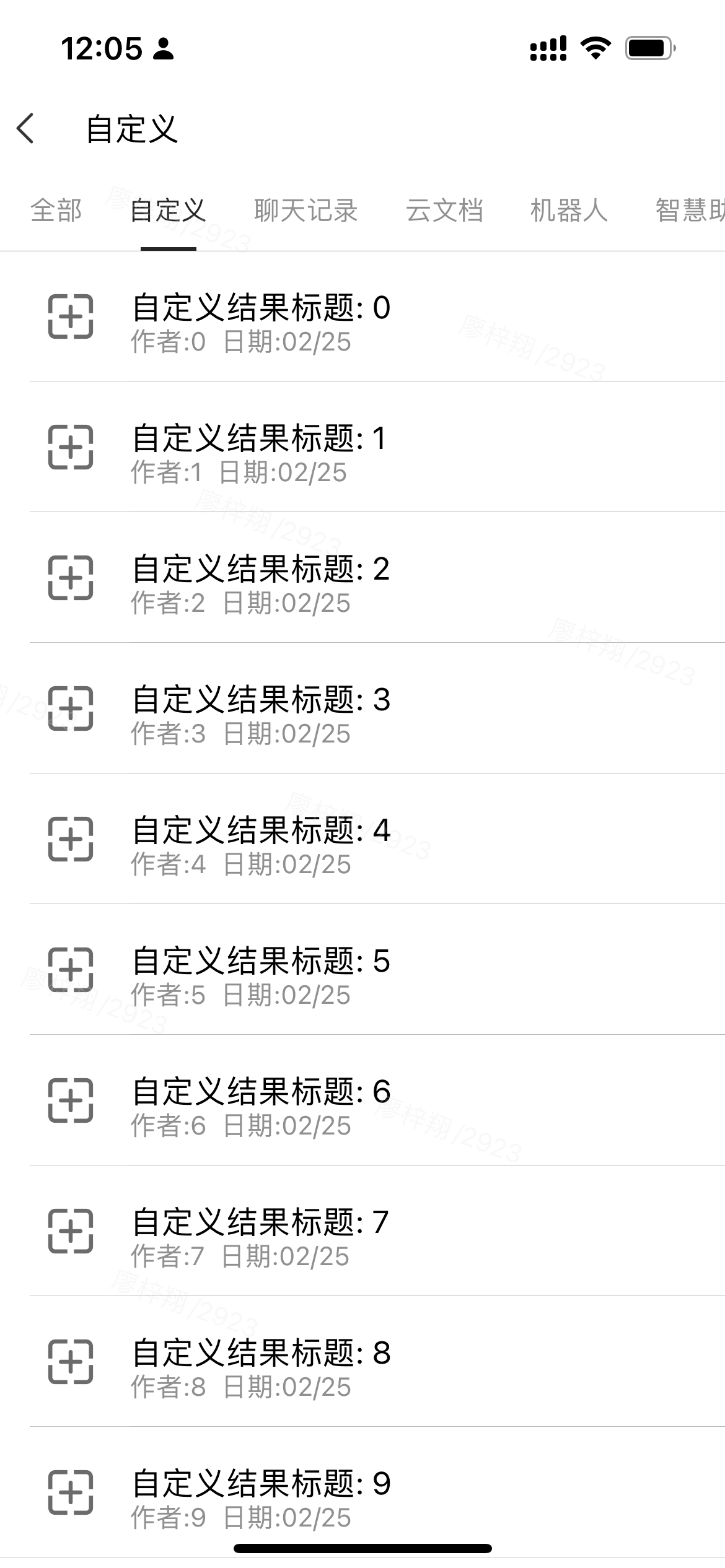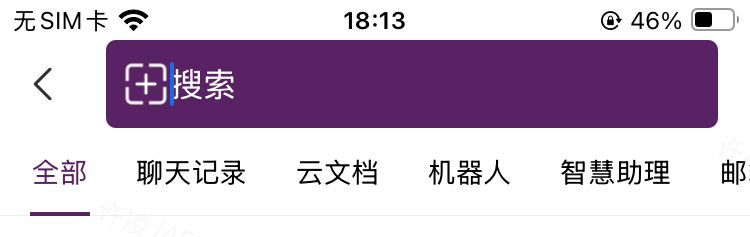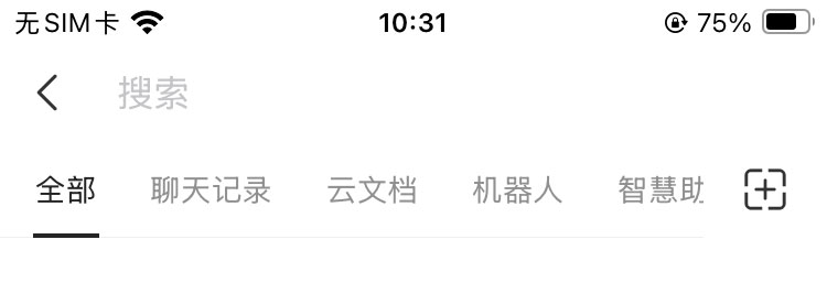 搜索界面默认展示了全部、聊天记录、云文档、机器人、联系人等搜索分类,可通过实现KIMSearchViewControllerDelegate的 updateSearchTabs 协议方法来自定义默认搜索分类,如对搜索分类进行新增、删除、修改排序等操作。