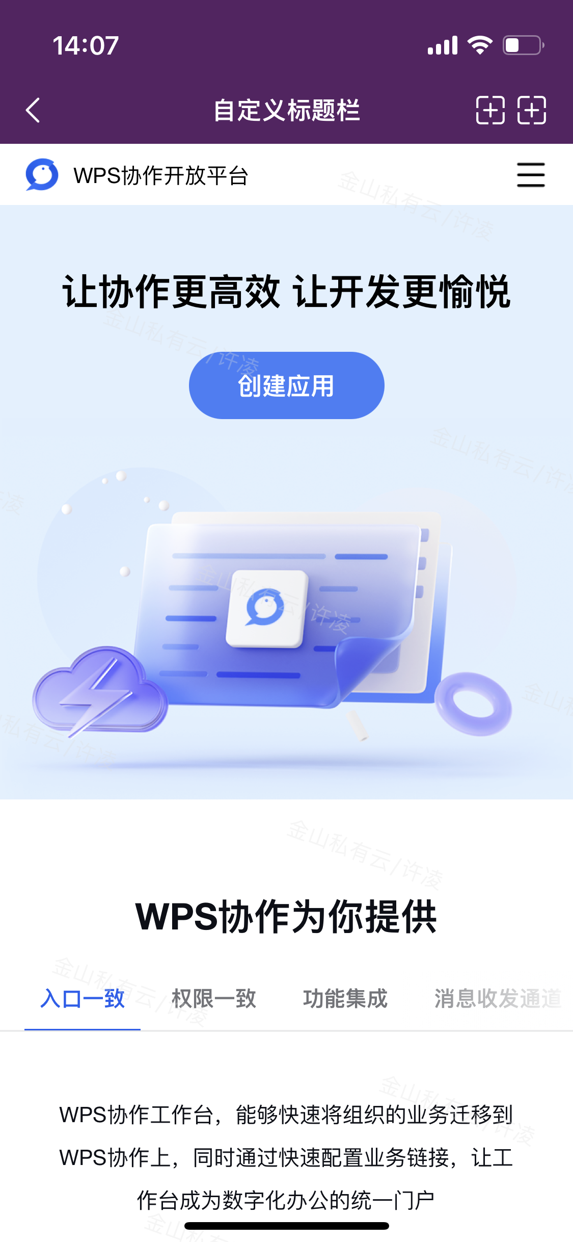| webViewController(_:updateTitleView:) | • controller: KIMWebViewController 网页容器视图控制器。 • titleView: KIMNavigationTitleView 标题视图。 | Void | 更新导航栏标题视图。SDK内部有相关修改标题视图的逻辑,如更新标题展示等,当标题视图发生更新时会调用该代理方法,可通过实现该方法对 titleView 内部变化进行监听,以便对 titleView 进行必要的二次处理。 |