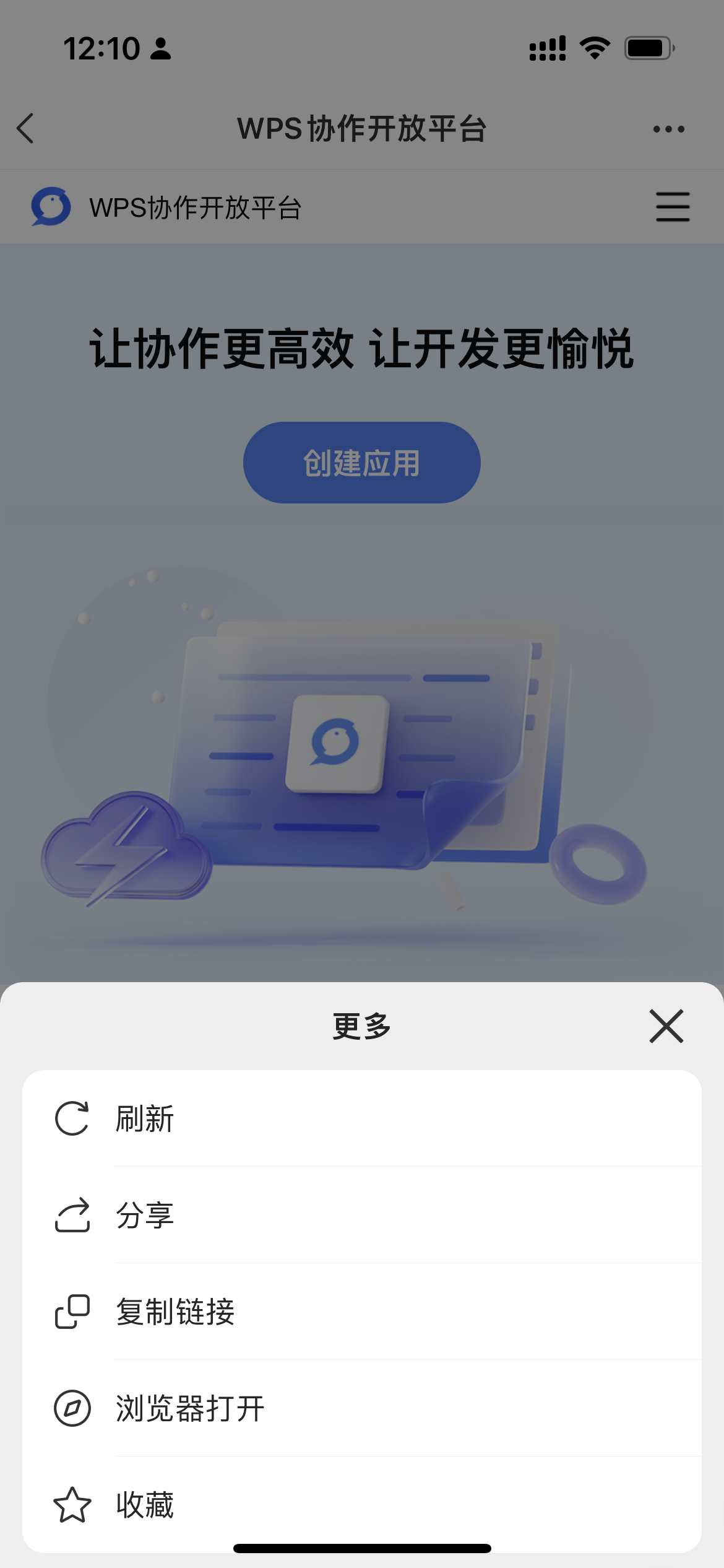 | webViewController(_:updateWebPopupMenus:) | • controller: KIMWebViewController 网页容器页面视图控制器。 • menus: [KIMWebViewMenuItem] 默认展示的菜单按钮。 | Void | 通过实现此方法,您可以自定义网页底部的菜单项。当网页菜单项显示时,该方法会被动态调用,允许您根据当前网页的 URL 返回需要展示的菜单项。返回的菜单项 ID 必须具有唯一性。 您可以使用 KIMWebViewMenuItem 中的常量 ID 来判断当前默认的菜单项目类型。 |