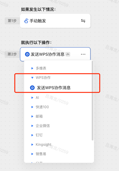 "name": "发送WPS协作消息",