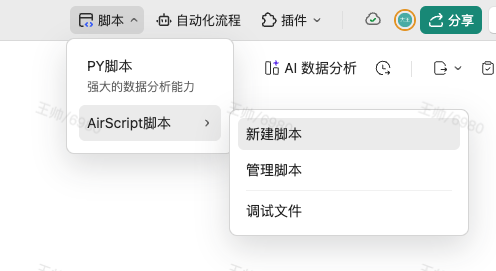 如果你用过airscript脚本,那么恭喜你,已经成功80%了!自动化插件脚本使用了和airscript脚本相同的执行环境,所以在开发过程中,你可以先使用脚本编辑器来作为你的调试工具,后续我们会为你提供更方便的调试环境。