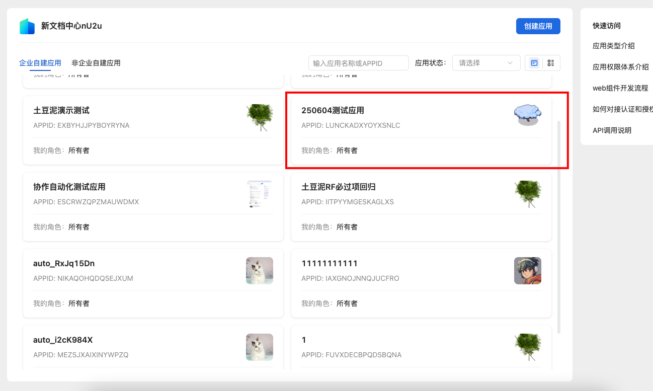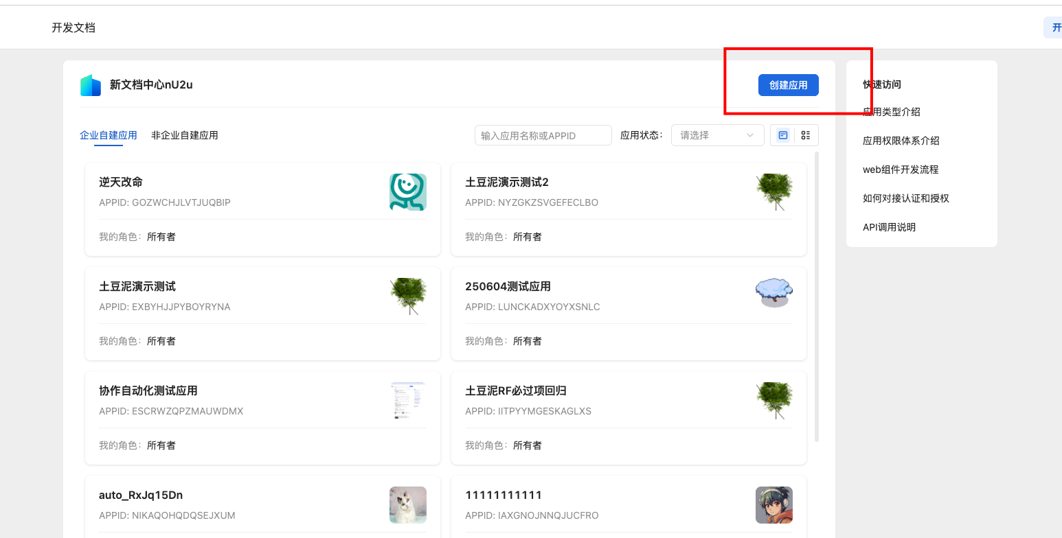 点击 创建应用