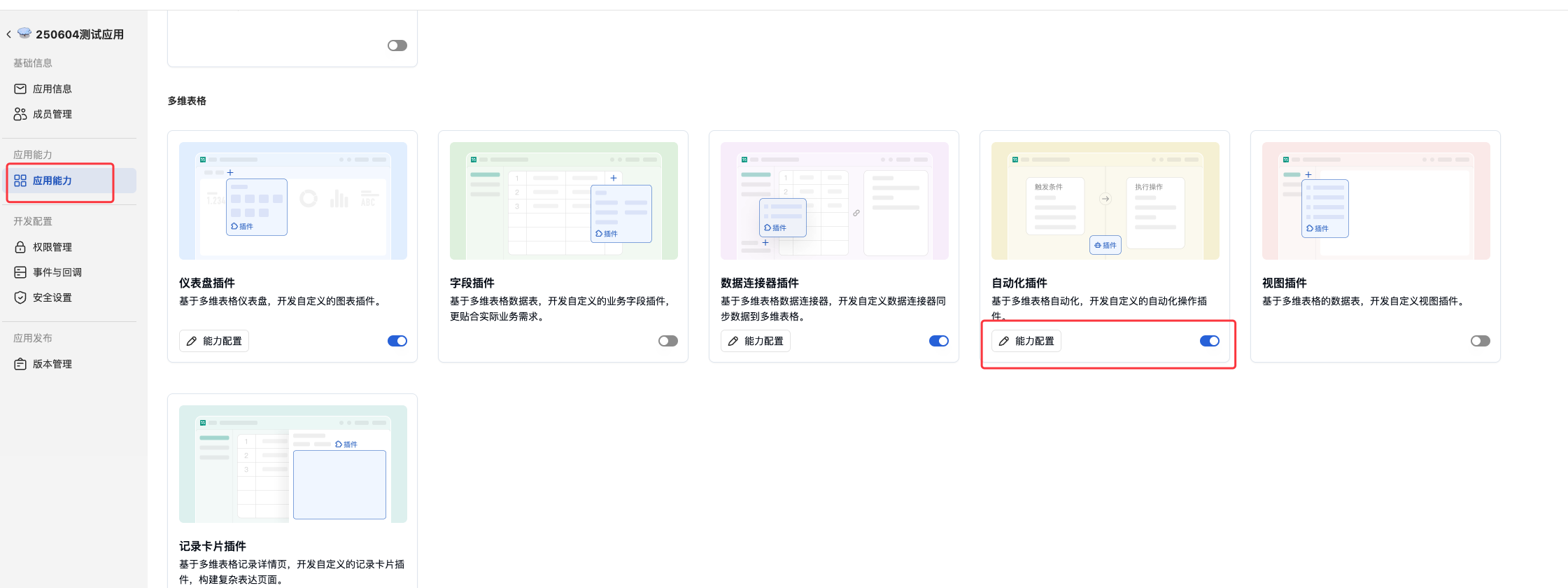 打开插件开关,进入能力配置