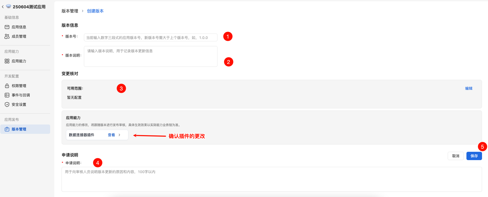 填写版本相关信息