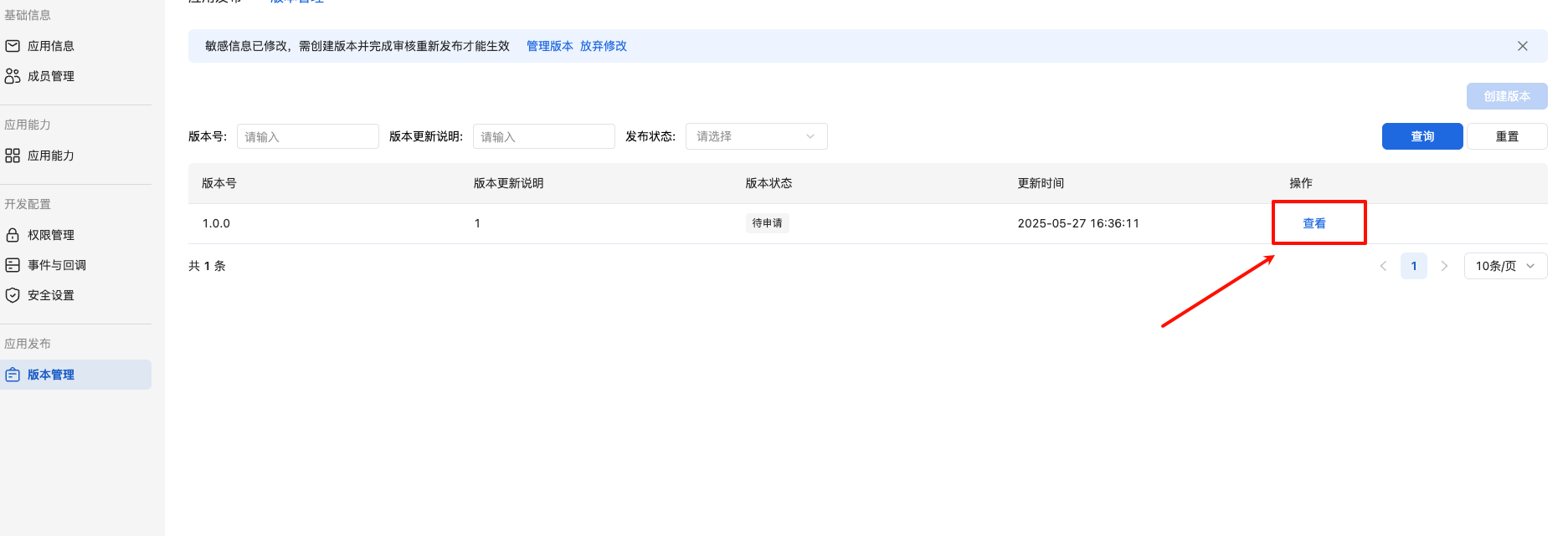 进入版本管理页面