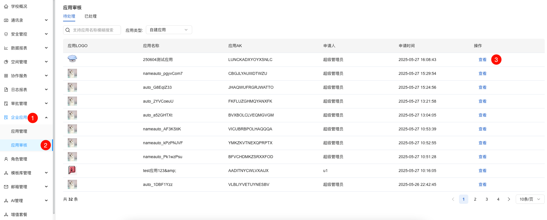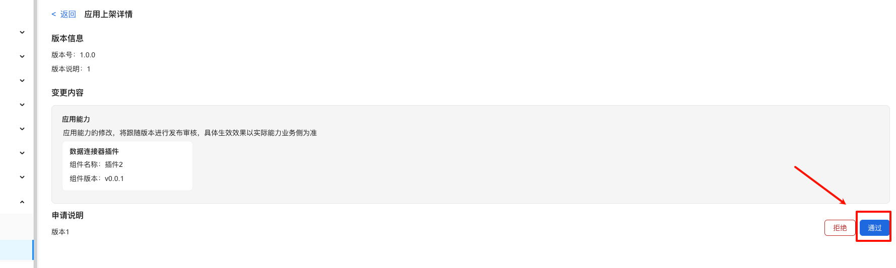 进入企业管理后台,找到对应的应用,在应用审核页面,通过上架应用的申请