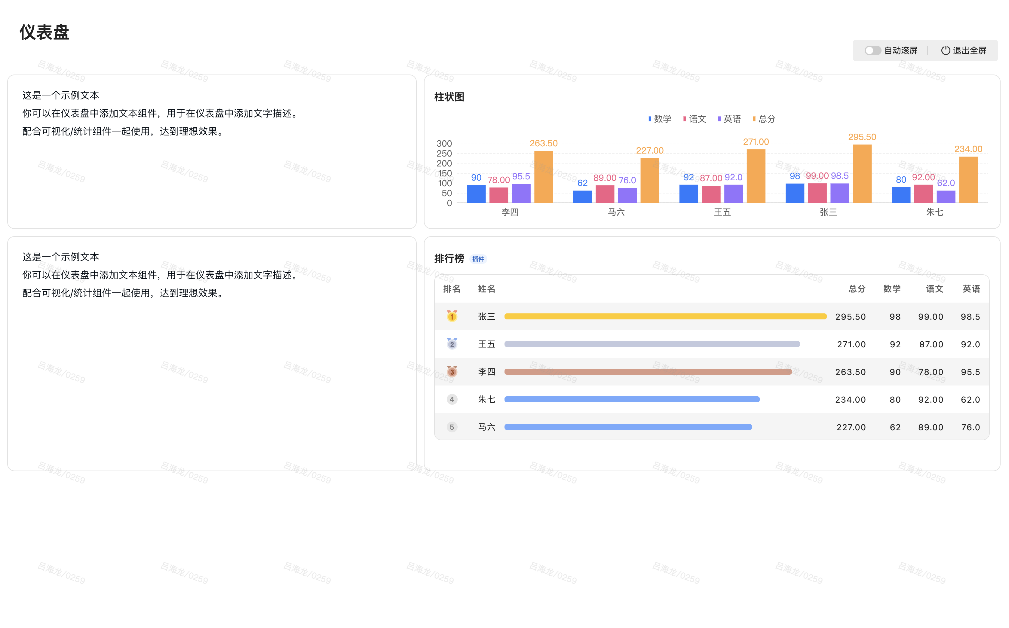 文字说明(非全屏/全屏,建议搭配其他组件一起使用)