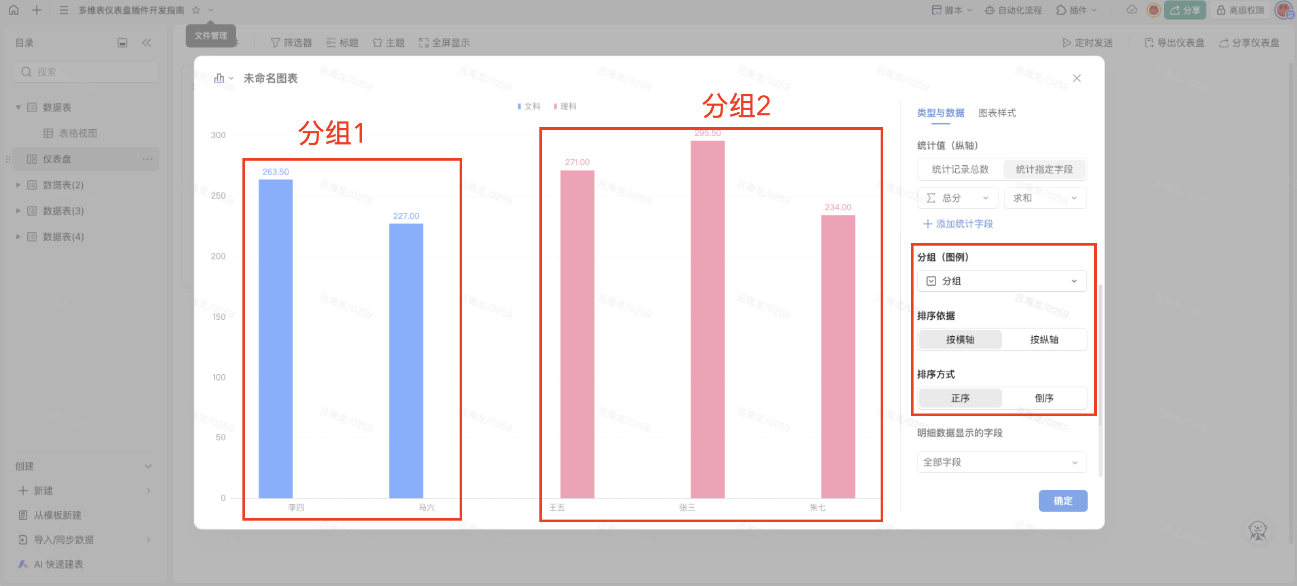}通过配置groups参数,实现图表的不同分组以及不同的排序方式