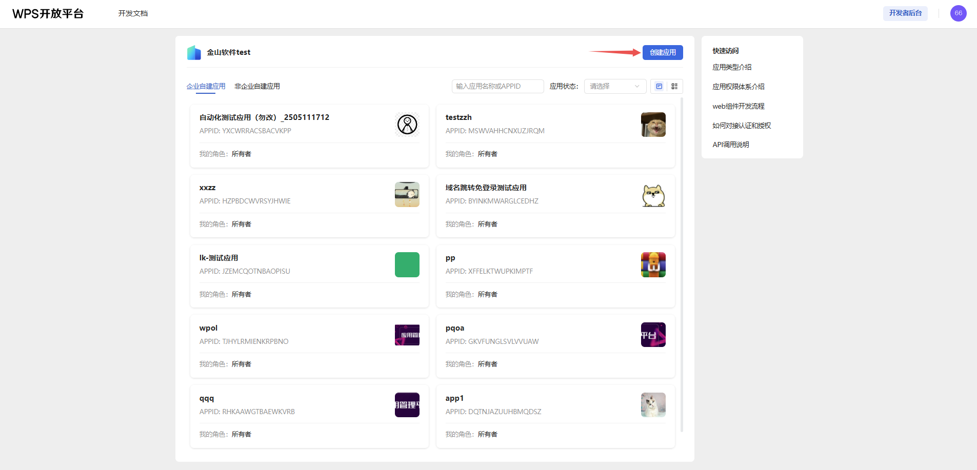 - 在“应用管理平台-集成管理“页面,完成应用创建。