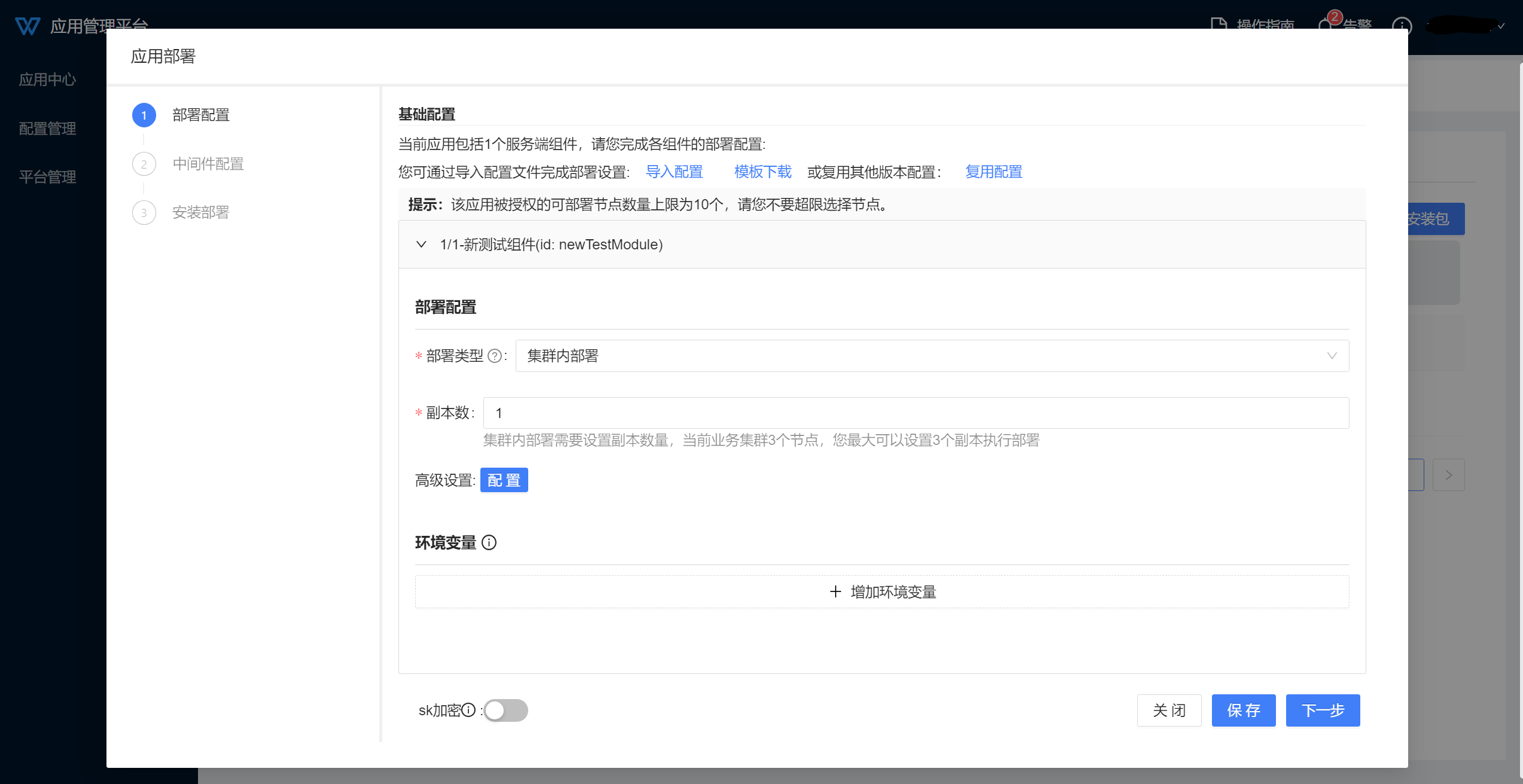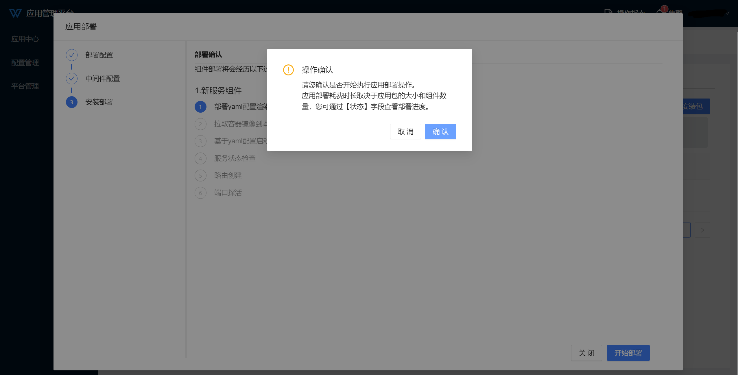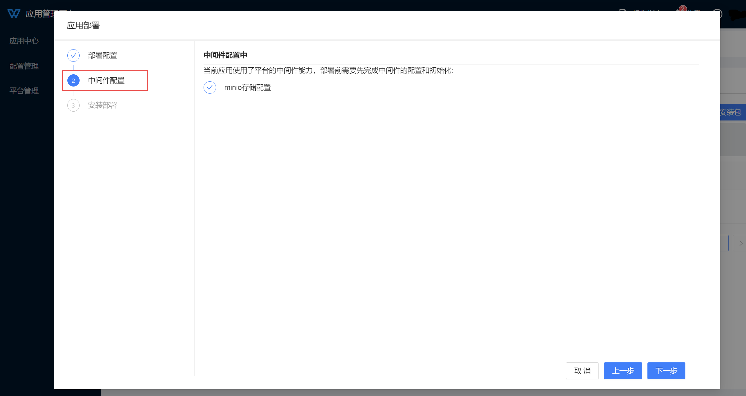 若应用有声明使用二开平台提供的数据库中间件、minio中间件能力,在部署时会触发中间的初始化。若应用未使用平台的中间件能力,则不会有此环节。