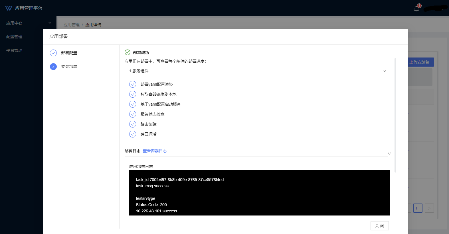4、部署成功或部署失败,可在[部署日志]模块点击查看“容器日志”:
