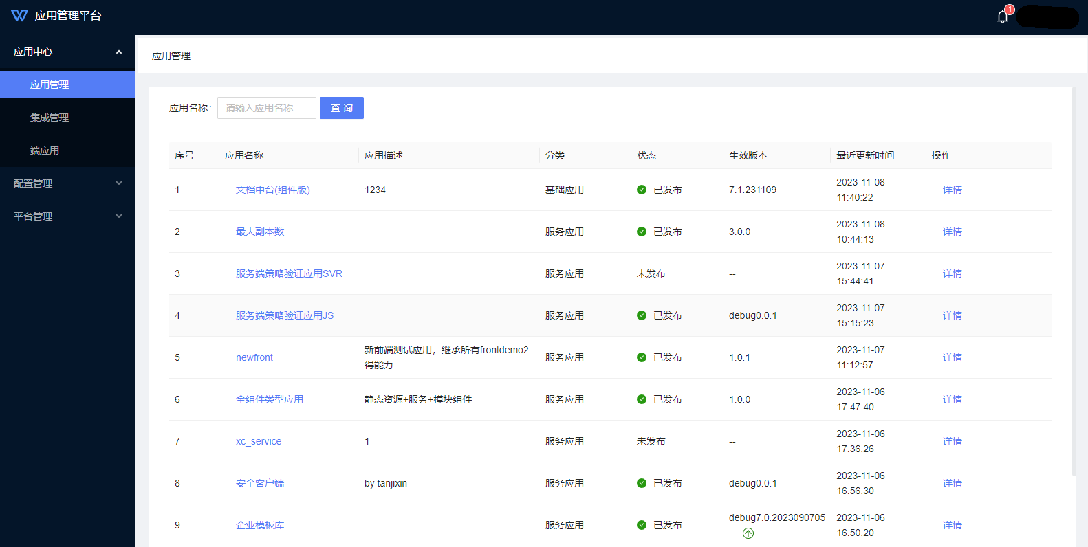 2、授权证书导入后,登陆[应用管理平台],在[应用管理]页面可查看到对应的应用。