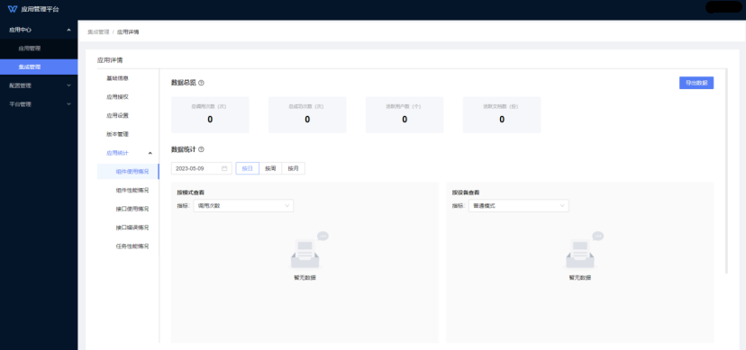 文档中台的集成应用,可查看应用接口使用相关数据: